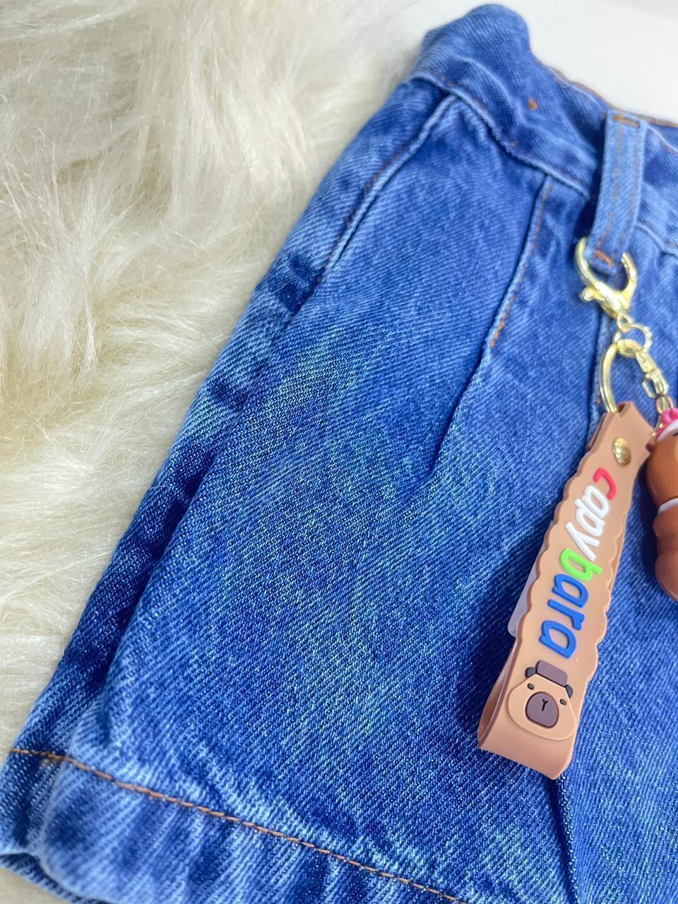Com o shorts jeans escuro com regulagem no cós, sua pequena estará sempre pronta para desfilar conforto, estilo e autenticidade.